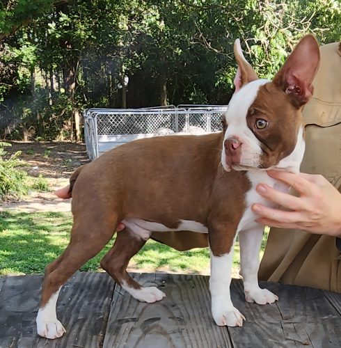 This beautiful red boy is $800 with full CKC registration. We were holding this pup for someone, but their plans fell through. This boy is off of our dogs Blaze & Shay. He has tons of personality, loves to play & loves people. You couldn’t ask for a sweeter pup! He comes with a one year health guarantee against any congenital defects. Sorry no air shipping, must pick up in person or you’re welcome have him ground shipped. We have quite a few trusted ground shippers we can put you in touch with. Please text Jason at 252-258-5175